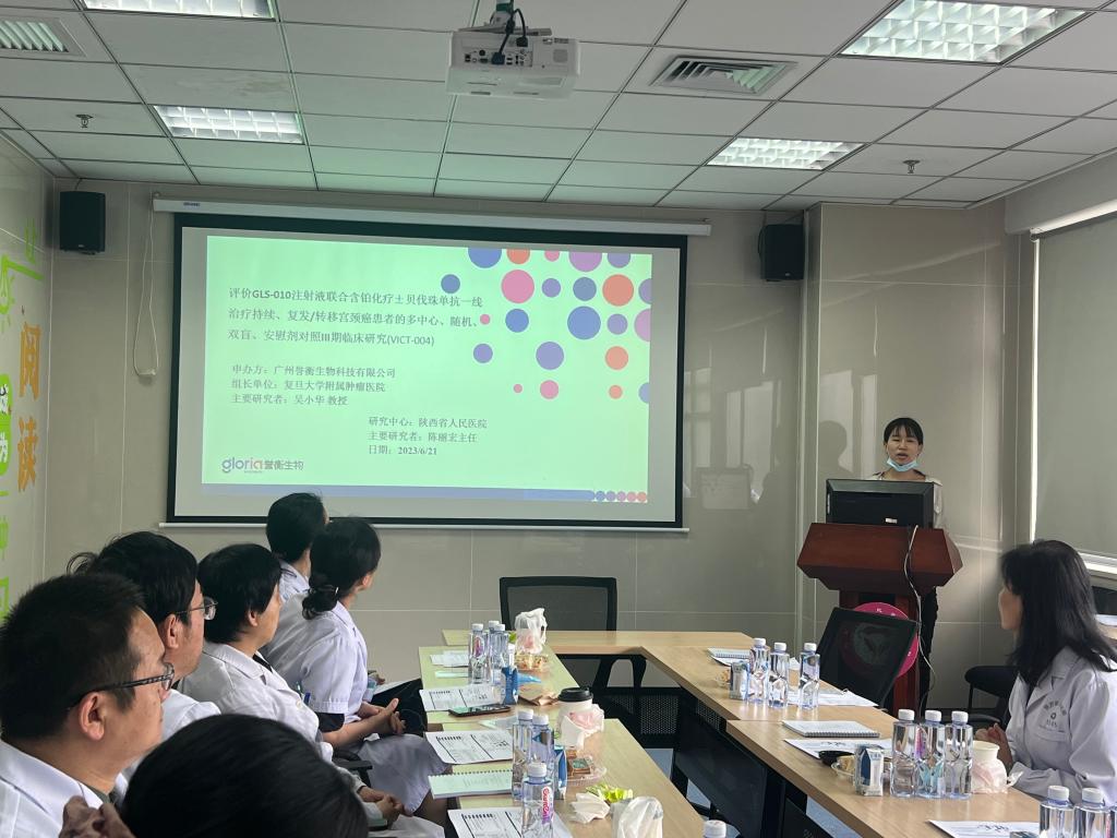 本年度第16个药物临床试验项目——“评价GLS-010注射液联合含铂化疗±贝伐珠单抗一线治疗持续、复发/转移宫颈癌患者的多中心、随机、双盲、安慰剂对照的III期临床研究”启动会在妇科顺利召开。项目负责人陈丽宏主任,妇科全体医护人员、CT室、MRI室、病理科和机构办相关工作人员及申办方代表参会。李玢副主任医师主持会议。
