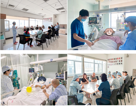 活动由丁妮副护士长负责专项督导落实,前期对家属进行院感培训,医护一体化共同对患者进行全面评估,每日选出2名病情稳定、住院时间较长、最适合参加此活动的患者,分别在上、下午穿隔离衣、鞋套,手卫生后进入病区1小时。由医护人员介绍科室的日常工作内容、患者病情及基本检查流程,让家属能够看到重症病房的内部设施及环境,了解患者的生活和治疗状况。同时也能零距离的看到医护人员的工作状态,学习基本的生活护理技能。在管床护士的协助下,参与患者的早期活动、进食及生活护理,更重要的是亲情陪伴。