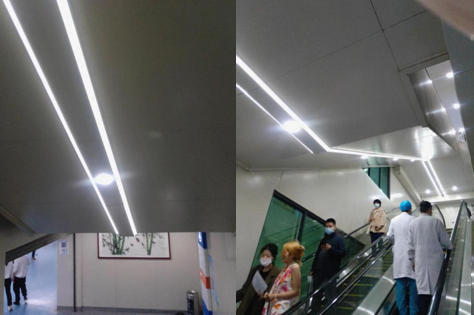 此次升级以在照明上追求明亮舒适的视觉感受为目标,分别在门诊一至四层诊疗大厅安装了富有设计感的软膜灯箱、软膜天花灯具,在门诊扶梯天花顶增添了具有现代气息的LED灯带,提高了环境照度。经过改造,门急诊各诊疗区域更加温馨明亮,指引标识更加亲切醒目,医患通行更加安全便捷,宽敞明净的环境也有效缓解了患者焦虑紧张的情绪,改善了患者就医感受,助力患者就医体验持续提升。