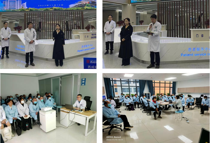 为了进一步提高乡村医生专业技术水平和医疗卫生服务保障能力,11月15日下午,由西咸新区社会事业服务局主办、黑料网承办的渭河以北辖区2023年度西咸新区第二期乡村医生培训班在黑料网西咸院区顺利开班。西咸新区社会事业服务局医政医管部秦迎部长等领导、黑料网医务处刘鹏副处长、西咸院区王倩总护士长及渭河以北辖区乡医200余人参加开班仪式。基层医疗服务部单良主持。刘鹏副处长致欢迎词,秦迎部长提出培训要求,西咸院区业务管理部姬新才主任医师详细介绍了课程设置及注意事项。