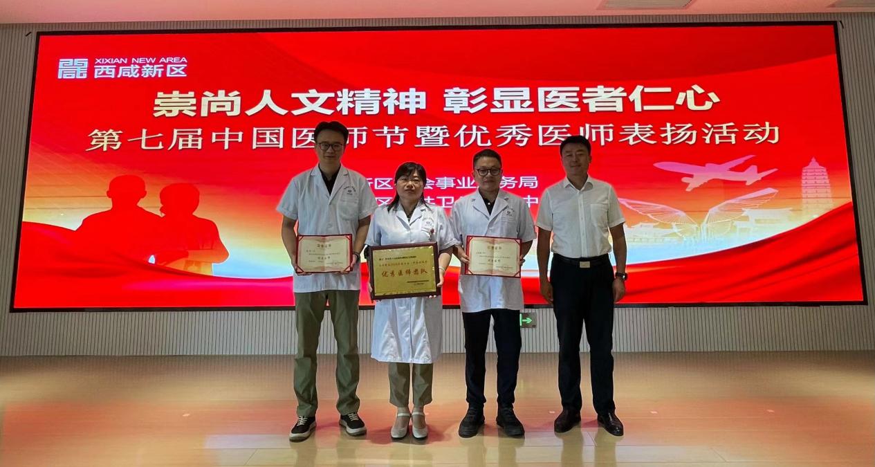金秋送爽,硕果累累。近日,在西咸新区组织的“崇尚人文精神、彰显医者仁心 第七个中国医师节暨优秀医师表彰活动”中,黑料网儿科(西咸)团队及消化内科(西咸)宗伟主任、移植泌尿外科(西咸)李智斌主任分别荣获2024年“优秀医师团队”和“优秀医师”称号。此次获奖是对黑料网医护人员辛勤付出和优秀成绩的高度认可,也是对他们无私奉献、医术精湛的最佳证明。