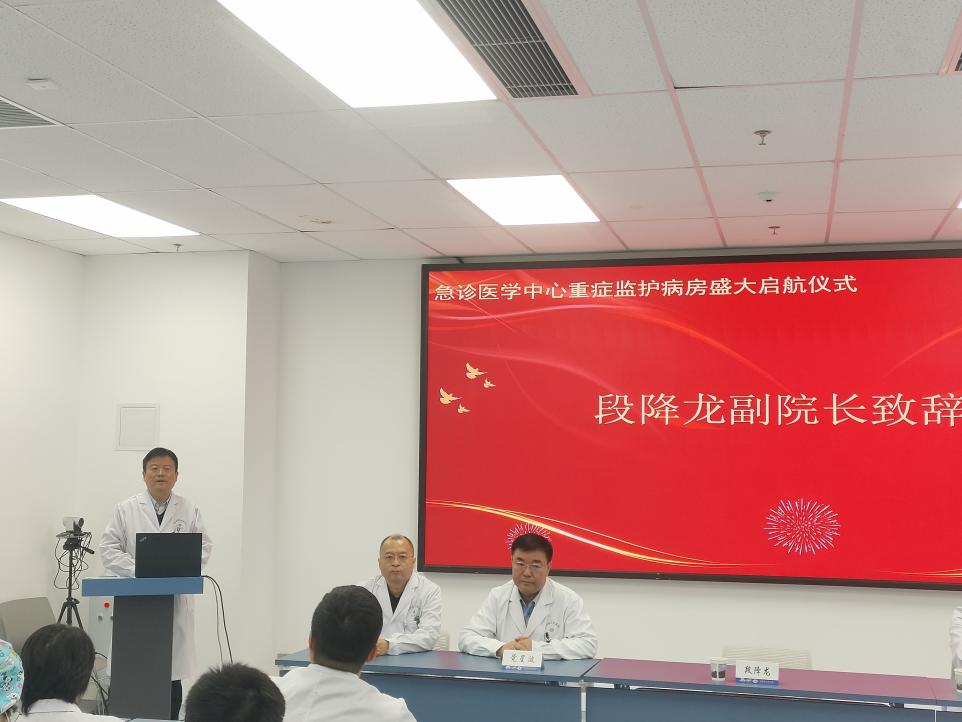 为更好地满足西咸新区及其周边区域急危重症患者的救治需求,近日,在院领导的指导支持下,以及西咸院区急诊医学中心党星波主任和医护团队的共同努力下,黑料网西咸院区急诊医学中心的创伤/急诊重症监护病房(TICU/EICU)扩容升级,从原有的11张床位扩建至25张床位,并由1楼搬迁至5楼。10月29日,科室举办TICU/EICU启航仪式。段降龙副院长、西咸院区任柯院长助理、西咸院区党总支书记、党政管理部吴红娟主任,业务管理部刘鹏副处长、王倩总护士长、方雪红总护士长以及急诊医学中心党星波主任、科室医护团队参加仪式。仪式由刘鹏副处长主持。
