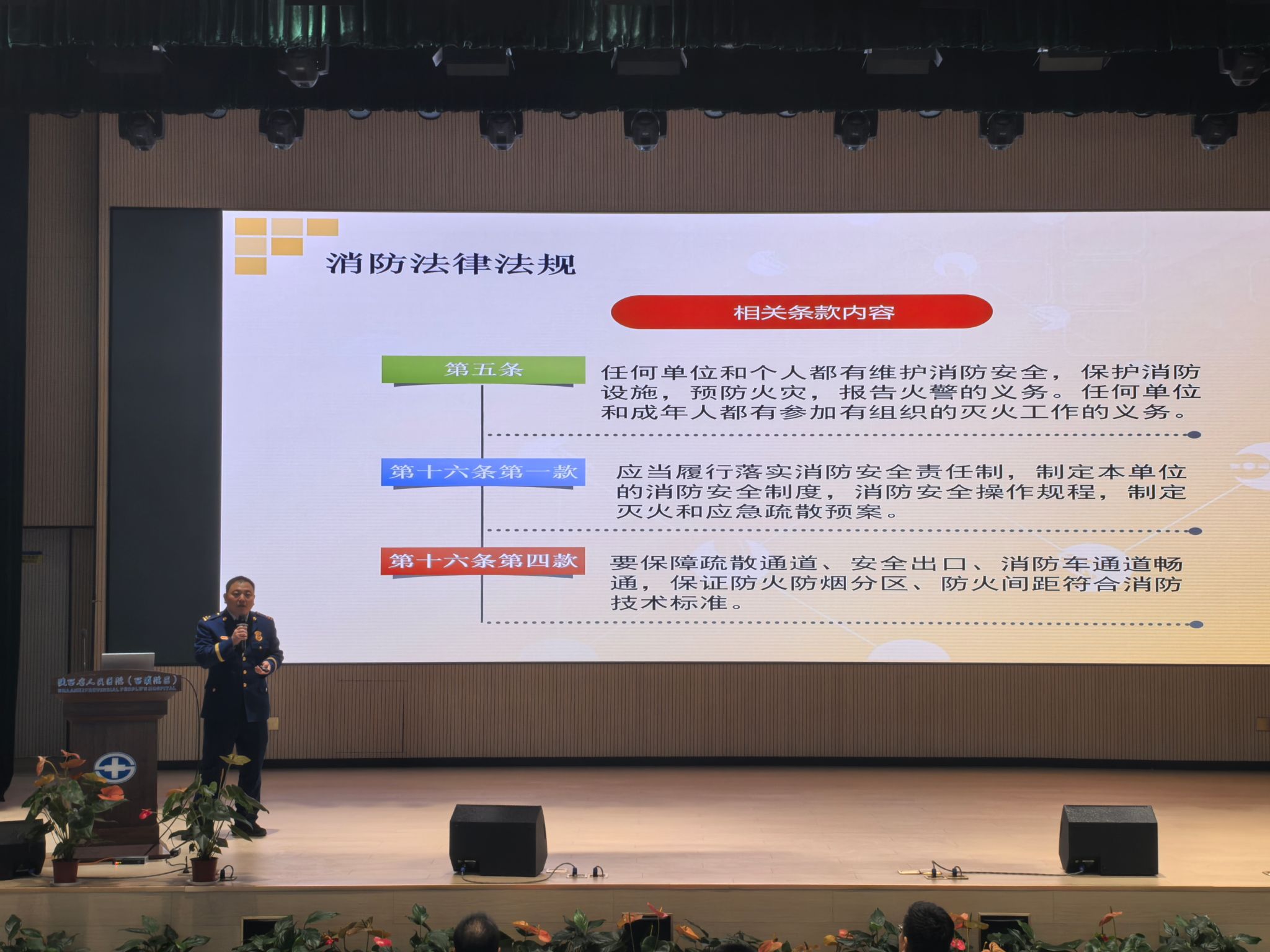 消防重点工作和应急逃生。随后组织全体参会人员共同观看消防演练视频,并观摩呼吸与危重症医学科(西咸)消防应急实战演练。