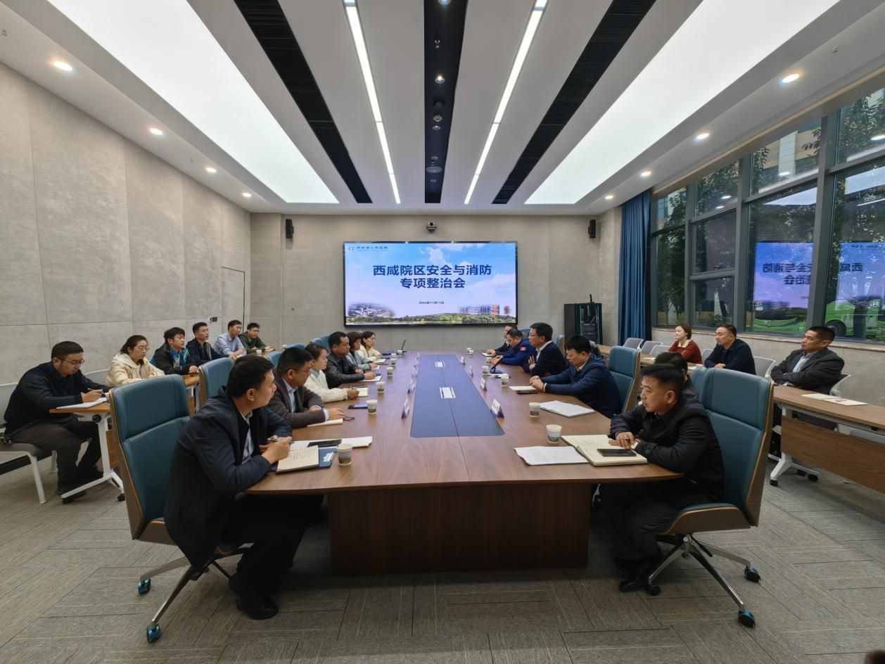继11月8日西咸院区组织开展2024年“消防安全月”培训及应急演练活动后,针对西咸院区后勤管理、安全保卫和总务服务机构设置不固定、人员配置不充足、运行模式不成熟等客观实际,11月11日,张恩科副院长主持召开西咸院区安全与消防专项会议。西咸院区任柯院长助理,总务处、保卫处、后勤服务中心、西咸发展建设部等相关部门负责人、第三方服务公司主管人员参加会议。本次活动特别邀请秦汉新城消防所张鲁所长进行技术把关和管理指导。
