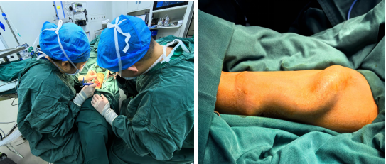 西咸院区移植泌尿外科接诊了患者,在完善各项检查后,决定为患者实施左腕部动静脉瘘闭瘘术。李智斌主任及阮东丽副主任医师制定了详细的手术方案。术中仔细游离桡动脉与头静吻合处,结扎桡动脉,仔细分析曲张静脉后,成功将患者左腕处鼓包逐个清除,历经一小时为患者拆除“炸弹”。