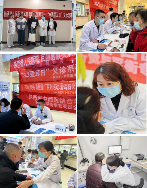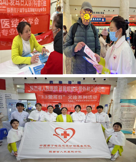 主院区义诊现场,耳鼻咽喉头颈外科刘晖主任、张文主任、王宇娟副主任、张瑾副主任、梁昆副主任等多位专家针对患者的问题给予耳内镜等现场查体,并给予相关专业的治疗指导和建议,现场免费提供耳纤维内镜检查15例,纯音听阈测听15例。西咸院区免当日上午挂号费,免费内镜检查10例,免费新生儿听力筛查10例。护理团队在杨晓蓉护士长、姚娟副护士长和蒋亭亭副护士长的带领下,发放科普宣传资料,为患者解疑答惑,给予耳病知识护理相关专业指导,获得一致好评。