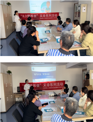 同时,科室开展了“医护患科普小课堂”。王宇娟副主任医师讲授了“健康聆听,从认识耳鸣”,带领大家了解耳鸣是什么声音,产生原因,耳鸣的影响以及如何预防和治疗耳鸣。李瑞琦护师讲解了专科操作“咽鼓管吹张”技术,让患者进一步了解和接受咽鼓管吹张的操作原理与过程,并设置了你问我答小游戏。