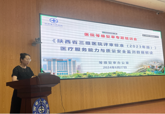 评审标准实施细则(2023年版)》——医疗服务能力与质量安全监测数据解读的专题培训。各临床医技科室主任、护士长、复审联络员及数据填报员共计200余人参加培训。