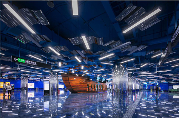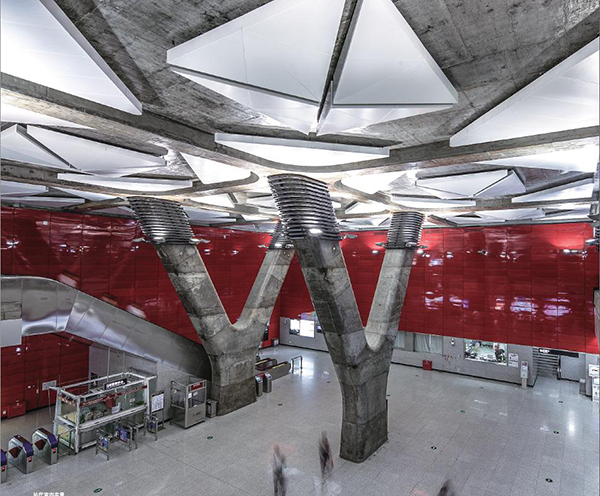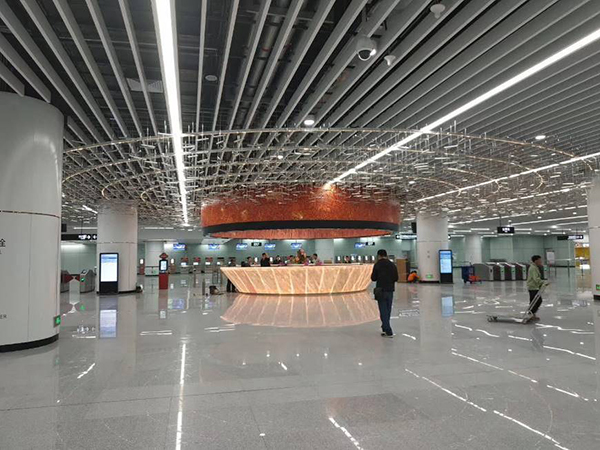 在如此大尺度的站厅空间中实施标准化的车站风格,将难以满足市民对C位车站空间的期许。在距离车站开通仅剩1个半月时,业主决定在保证车站开通时间不变的前提下,对车站现状进行优化装修,使天河公园站成为广州地铁线网中极具特色的车站。在业主的信任与全力支持下,GDAD临危受命,组织第三设计所团队用两周时间完成优化方案“天河星雨”的方案设计和相关深化图纸,并配合业主与施工方开展现场服务。经过一个月的共同努力,项目如期落地。车站自开通后立即成为网红站点,装修效果获得市民和业界的好评,设计团队也收到业主的感谢信。