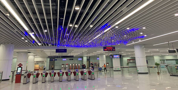 2019年12月20日,广州地铁二十一号线后通段如期开通。广东省建筑设计研究院(GDAD)团队参与了包括全线车站公共区装修方案设计、4个高架站与1个地下站的工点设计、1个地面站的外立面设计。其中高架站之一的金坑站成为全国首例获得“三星级绿色建筑设计标识证书”车站,亚洲第一大地铁站——天河公园站装修优化设计“天河星雨”更是受到业界的广泛关注和业主的高度认可。