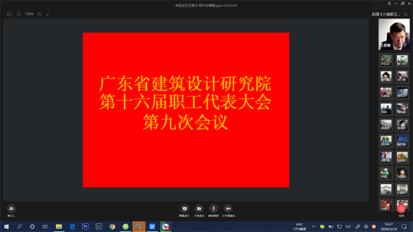 正值新冠肺炎疫情防控和推进我院改革发展的关键阶段,3月19-20日,我院首次采用视频会议的形式,召开第十六届职工代表大会第九次会议。院领导班子成员和正式代表、列席代表共计198人参加会议,共商发展大计,共谋发展前景。省住房城乡建设厅党组成员、副厅长蔡瀛向大会发来热情洋溢的信,对我院改革发展提出新希望、新要求。
