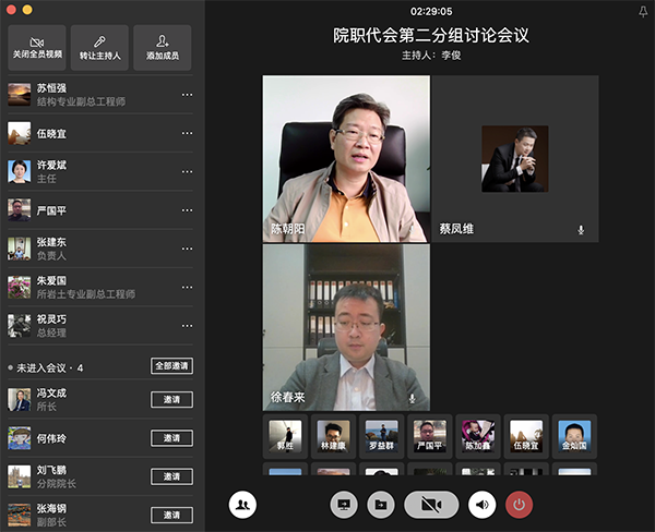 陈雄副院长、罗赤宇总工程师在分组讨论视频会议