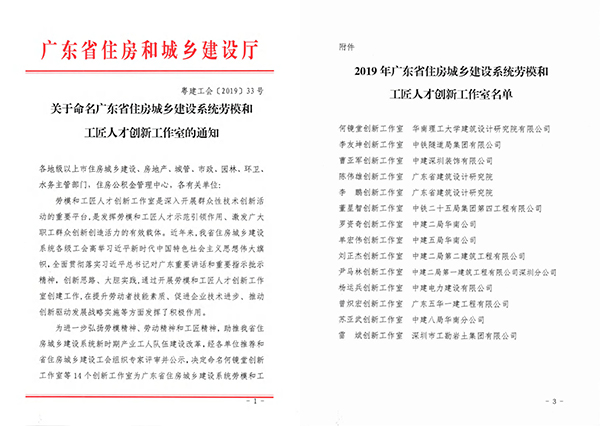 2.关于命名广东省住房城乡建设系统劳模和工匠人才创新工作室的通知(建工会〔2019〕33号)