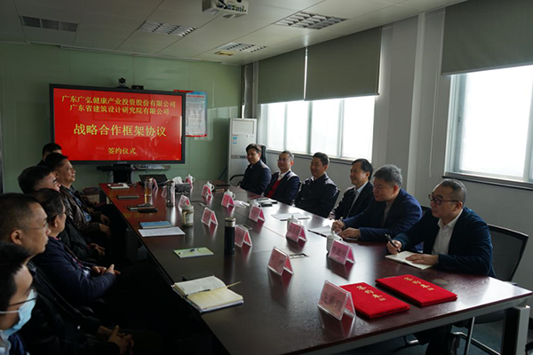 双方进行了亲切友好的座谈交流,在与会人员的共同见证下,GDAD党委书记曾宪川和广弘投资董事长郑卫平代表双方签署了战略合作框架协议书。双方约定,以资源互补、利益共享、风险共担为原则,广弘投资充分发挥其在园区开发、医疗康养、运营管理等方面的优势;GDAD充分发挥在设计、规划、勘察、测绘、咨询等方面的资源优势,共同推进项目合作。