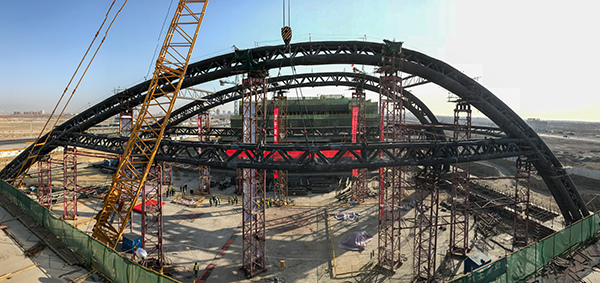 多拱联合受力结构封顶现场图