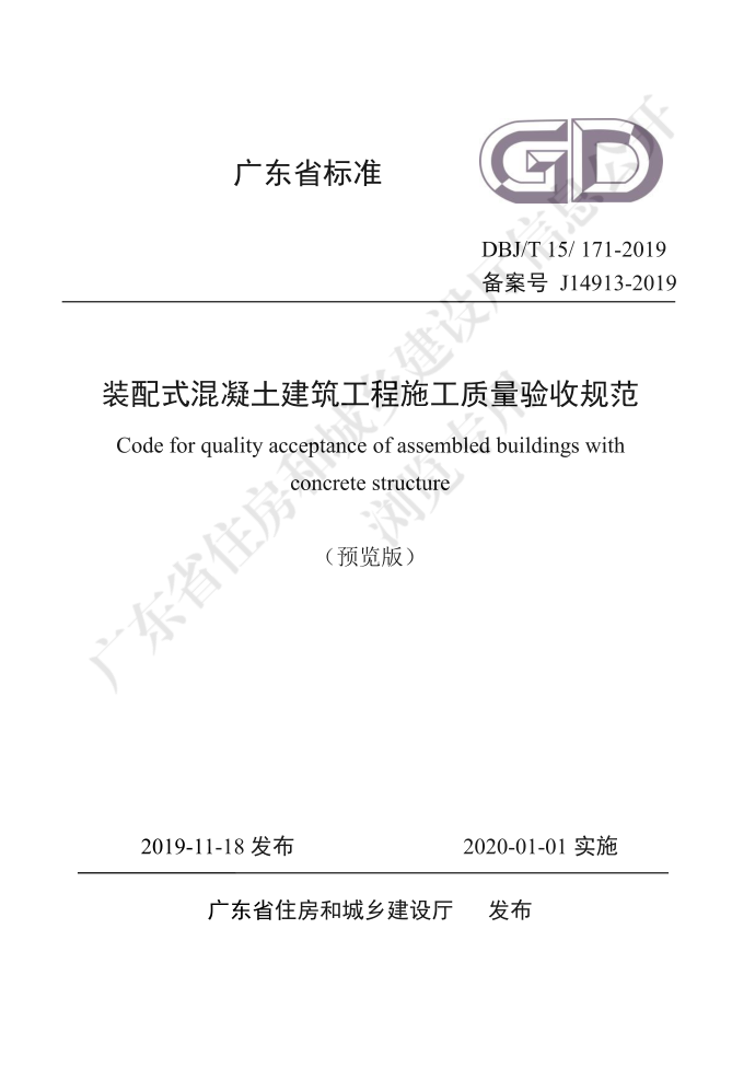 广东省标准《装配式混凝土建筑工程施工质量验收规范》DBJ/T 15-171-2019