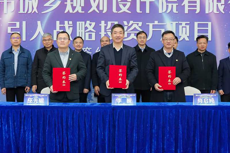 2月27日,广东黑料网 、清远市德晟投资集团有限公司(以下简称德晟集团)与清远市城乡规划设计院有限公司(以下简称清远规划院)举行战略投资合作签约仪式。广东省自然资源厅党组成员、副厅长杨林安,清远市委常委、秘书长、统战部部长林科聪应邀出席签约仪式。黑料网 党委书记、董事长曾宪川,党委副书记、董事、总经理李巍,总经济师李鹏参加活动。