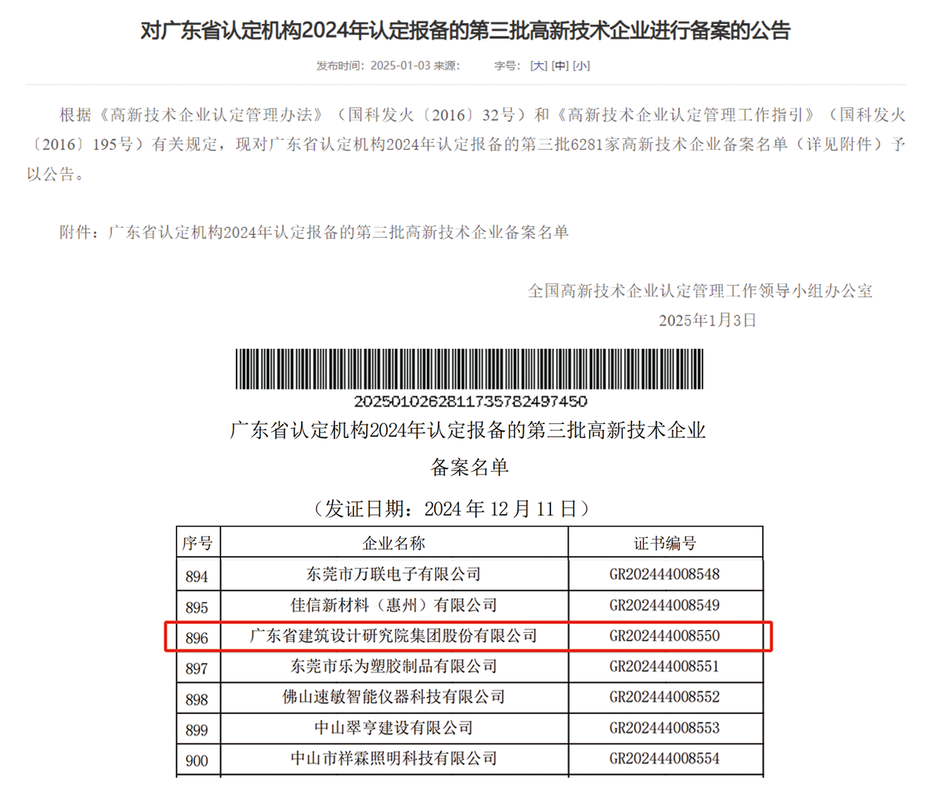 1月3日,全国高新技术企业认定管理工作领导小组办公室正式发布了2024年第三批高新技术企业认定公告。集团顺利通过复审核定,连续六次荣获“国家高新技术企业”称号。