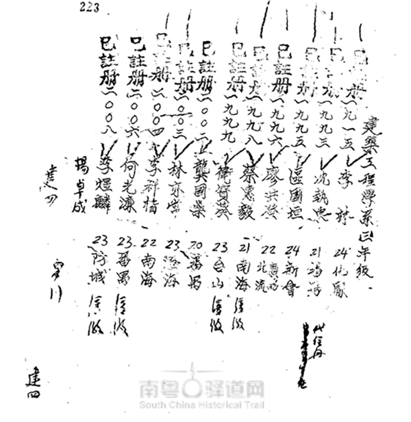如果按照原来1938年的计划,到1941年可能就没有建筑学的招生了,省库断奶的时间到了。庆幸1941年有入学的建筑学专业新的学生,他们是在坪石完成学业的一代,多位学生毕业后实践多年成为广东各大设计院的总工程师,如李奋强,成为广东省建筑设计院的总工程师,1982年的广东迎宾馆白云楼就是李奋强先生与郭怡昌、关富椿合作设计的。谢西家毕业回乡后,发挥所长,于1945年进入私人的营造公司设计了澄海中学,后任汕头城市建设局工程师,曾担任汕头市科学技术协会副主席。