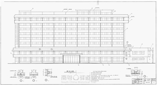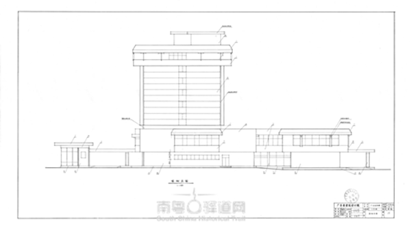 广东迎宾馆3号楼(白云楼)建筑的南向立面图,广东省建筑设计研究院提供。