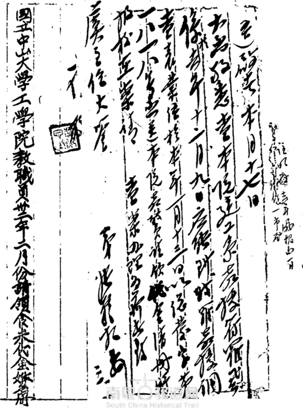 2.“国立中山大学关于送缴勷勤大学工学院在学生及休学生名册等事的呈”,档案号020-004-978-014~023,藏于广东省档案馆。