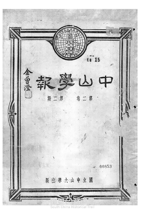 第二卷第2期《中山学报》封面,藏于广东省档案馆。
