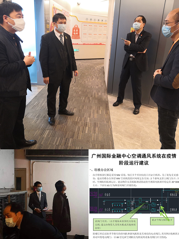 开工首日,正值疫情高峰,广州国际金融中心、广州白云机场等多家业主紧急致电我院机电三所顾问团队,希望通过优化机电设备,尤其是空调通风系统运行方式,内防扩散,保障办公安全。疫情就是命令,防控就是责任,业主的期待就是我们奋力追求的目标,机电三所党支部立刻行动,当天即派出骨干党员奔赴现场,尤其是党小组组长、所空调专业副总工程师郭林文同志主动请缨,佩戴好口罩后带头深入一线,对西塔空调通风系统实地查勘,又向物管人员仔细询问系统运行情况,认真细致地对图分析后,现场及时请教院副总工程师郭勇同志和所空调专业总工程师陈小辉,商讨研究出最优解决方案,紧接着连夜奋战,编写《广州国际金融中心空调通风系统在新冠肺炎疫情期间运行报告》,以最快的速度解决了业主燃眉之急,按下恢复生产生活“快进键”。出门就可能增加一份感染的风险,但不去现场就很难快速准确掌握情况,“我们的工作抓紧抓细一点,业主复工复产的风险就低一点,而且我是党员,冲锋在前义不容辞!”党员郭林文说道。机电三所党支部的党员们在关键时刻能急业主之所急,召之即来、来之能战、战之必胜,在极短的时间内高效完成了针对性强、措施得当的疫情期间机电运行报告,获得了业主方高度赞扬。