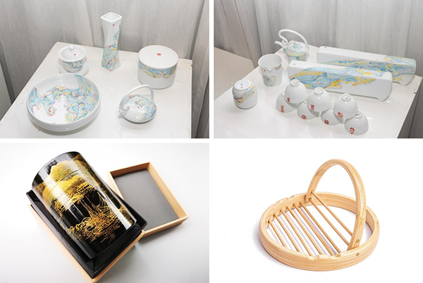 “作品制成只用了两三天,构思则花了一两周。” 广东岭南职业技术学院的老师梁琨比次是将15件瓷器作品用泡泡纸包装好用行李箱装着来参评,她制作的《云中》古韵潮州艺术瓷套件,展现的是汕头五个古镇(凤凰镇后河村、文祠镇李工坑村、龙湖镇龙湖古寨、古巷镇孚中村、古巷镇象埔寨)与河流云彩自然的融合的场景。梁琨本身是湖南人,她钟爱中国传统文化和潮汕当地文化,“潮州古城产单枞,其茶文化深入古城骨髓之中,因此设计茶具也体现古城风俗特色。去年潮汕的天空曾出现七彩祥云,将这元素嵌入,亦是吉祥的象征。”