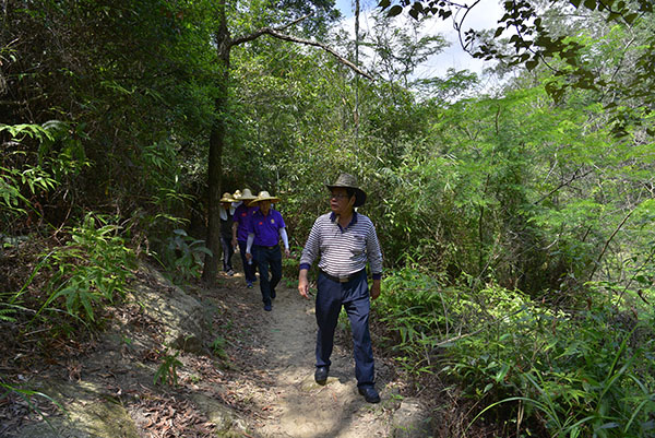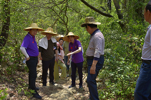 图为指导组一行调研香山古道(珠海凤凰山段)。