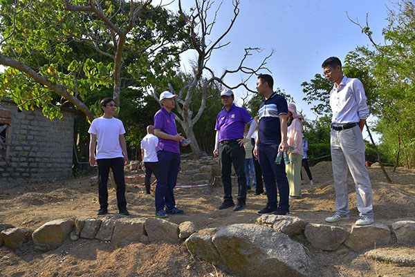 4月23日,技术指导组一行实地调研了海关古道上的办公区遗址、水手房遗址、铳城、烽火台等节点。建议:一是海关遗址展览馆用地已调整至省级文保单位保护范围外,方案的审批权限在珠海市,相关单位要抓紧编制材料,尽快报批;二是要对海关古道、海关遗址展览馆和周边环境进行统一设计,尤其是要做好海关古道出入口与环岛路的衔接,以及海关遗址展览馆的选材和细节推敲,并增加相应标识牌和说明牌,提升重要节点的可读性;三是在海关古道建设中要把握好古道与海的关系,既要呈现出古道的历史风貌,也要将海的景观释放出来;四是请该项目设计单位按照文物部门的要求提出古道沿线2处海关遗址的保护方案,经有关部门或专家审查论证后再予实施。