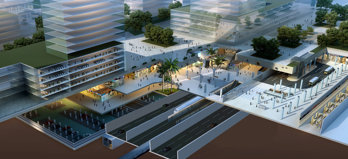 广州金融城起步区公共地下空间项目是实行三维立体式开发、功能复合化的地下综合体,代表当今世界最先进地下空间开发水平,拥有最完善的地下空间功能。拟打造融合交通、商业、公共服务、停车、绿色市政的复合型地下城市综合体,形成配套完善、功能复合、上下一体、交通便利、安全舒适的地下城市网络。项目根据规划形成“三核三轴七组团”的地下空间开发结构。以道路交通线路为骨架,形成枢纽核心、翠岛核心、方城核心及七个组团空间,核心区通过商业步行往形成的地下发展轴与其他组团相联系,形成共同发展的地下空间网络。坚持集约建设原则,发挥交通枢纽、地铁站的辐射价值,实现地下空间公共地块与开发地块功能、空间的无缝衔接。优化提升区域交通,形成集地铁、公交、车行、人行的一体化立体综合交通网络。充分利用现状河涌、结合广州气候特点,塑造下沉广场、步行商业街显现岭南开放兼容的核心特质。加强人工环境与自然环境的交互,加强地下景观塑造,创造生态、舒适的地下环境。金融城起步区公共地下空间旨在形成一个活力、高效、低碳示范的地下枢纽,通过土地交通、资源利用、环境模拟、绿色建筑四个低碳生态角度的硏究,将新技术、新理念落实到土地空间开发、交通、市政等专项规划,统筹地下市政设施,采用成熟的绿色市政技术集成,形成低碳环保、高效节能、资源共享的示范区。为金融城营造出回归自然、回归生活的理想空间,并作为绿色生态示范城区与绿色建筑示范区凸显岀广州新型城市化的最新成果。