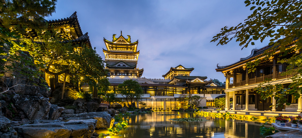 粤剧艺术博物馆以传承非物质文化遗产为设计理念,采用传统民间工艺和当代艺术创作融为一体的手法,呈现具有地方特色的高标准工艺和建筑艺术有机结合的细节,其中以三雕两塑(木雕、砖雕、石雕、灰塑、陶塑)和园林假山营造最具亮点。