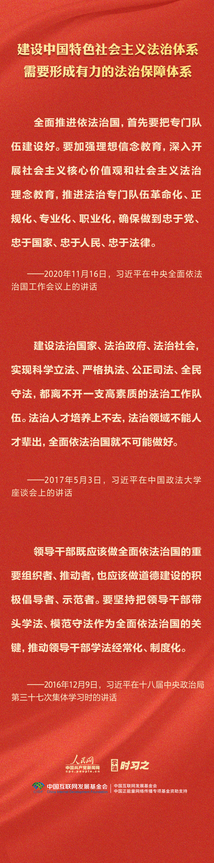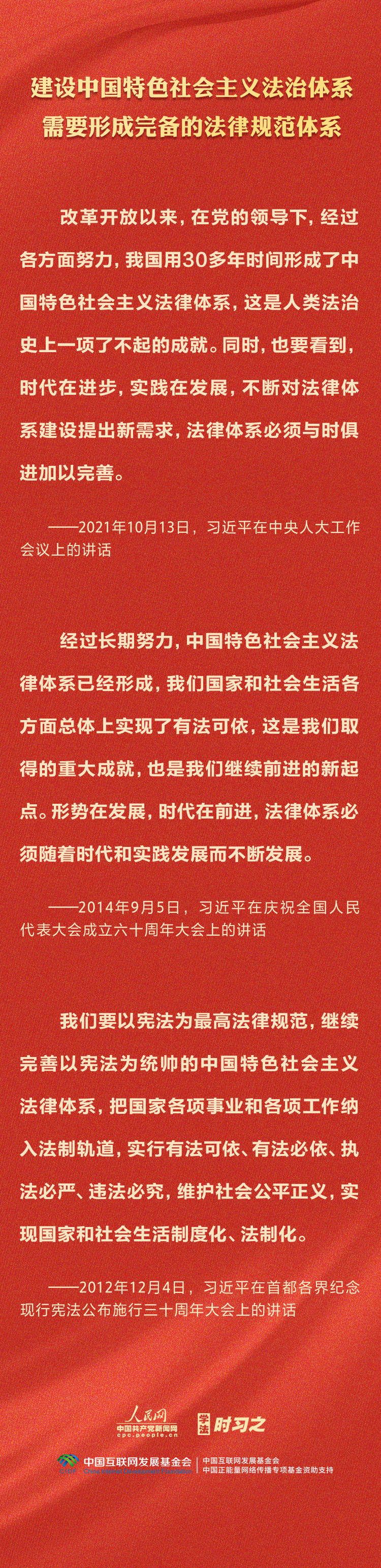 今年是贯彻落实党的二十大精神的开局之年。中共中央政治局决定从今年4月开始,在全党自上而下开展学习贯彻习近平新时代中国特色社会主义思想主题教育。习近平法治思想是习近平新时代中国特色社会主义思想的重要组成部分,人民网·中国共产党新闻网推出学法时习之·学习习近平法治思想系列策划,本篇聚焦“坚持建设中国特色社会主义法治体系”。